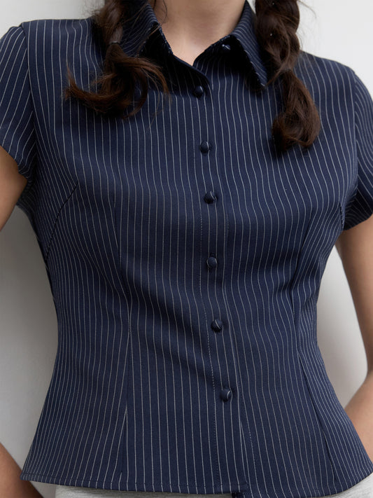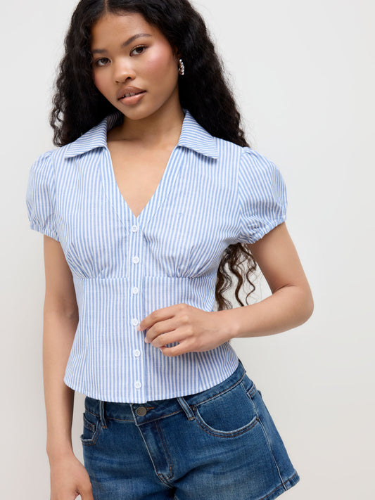 Camisa con rayas e lazo na parte traseira de mestura de algodón
