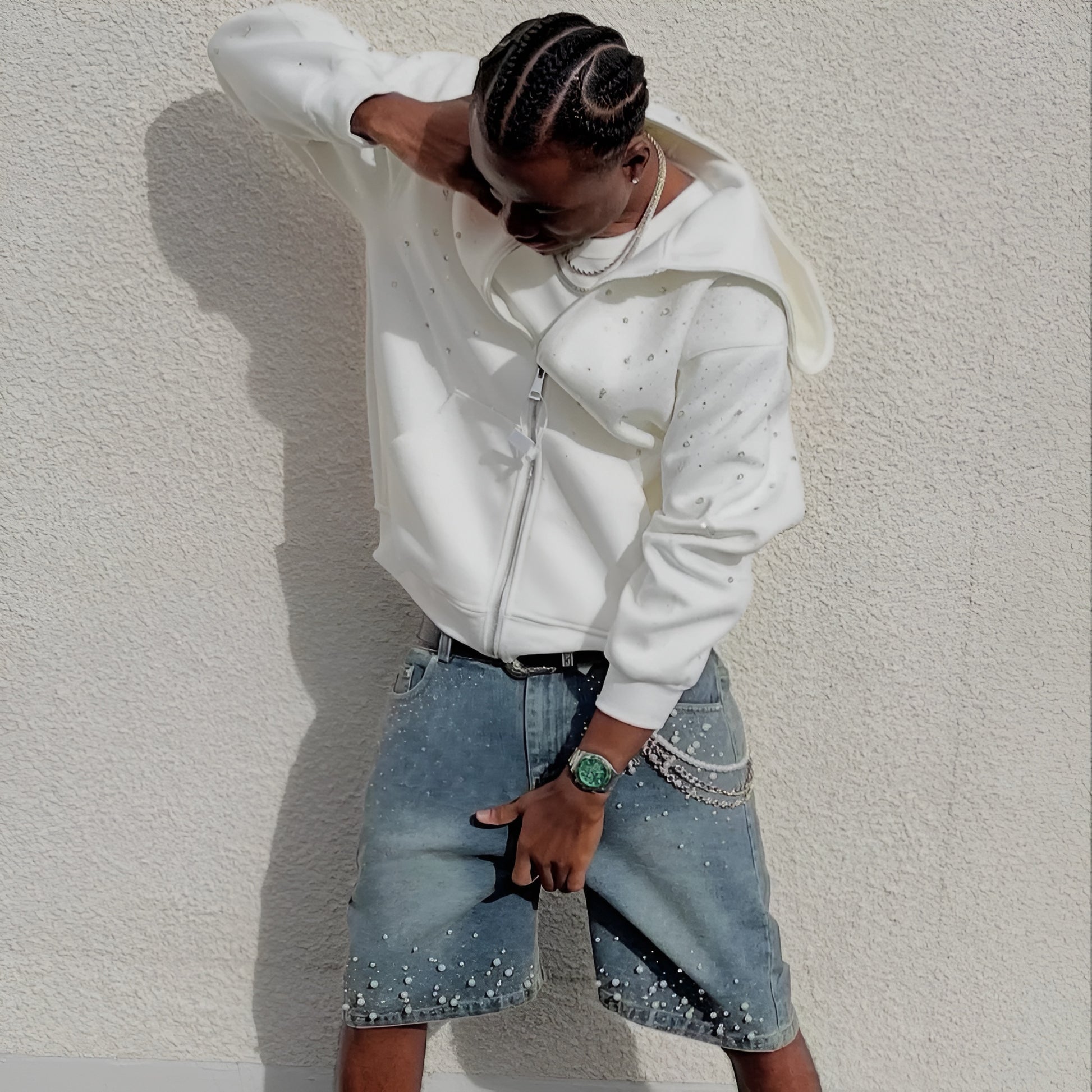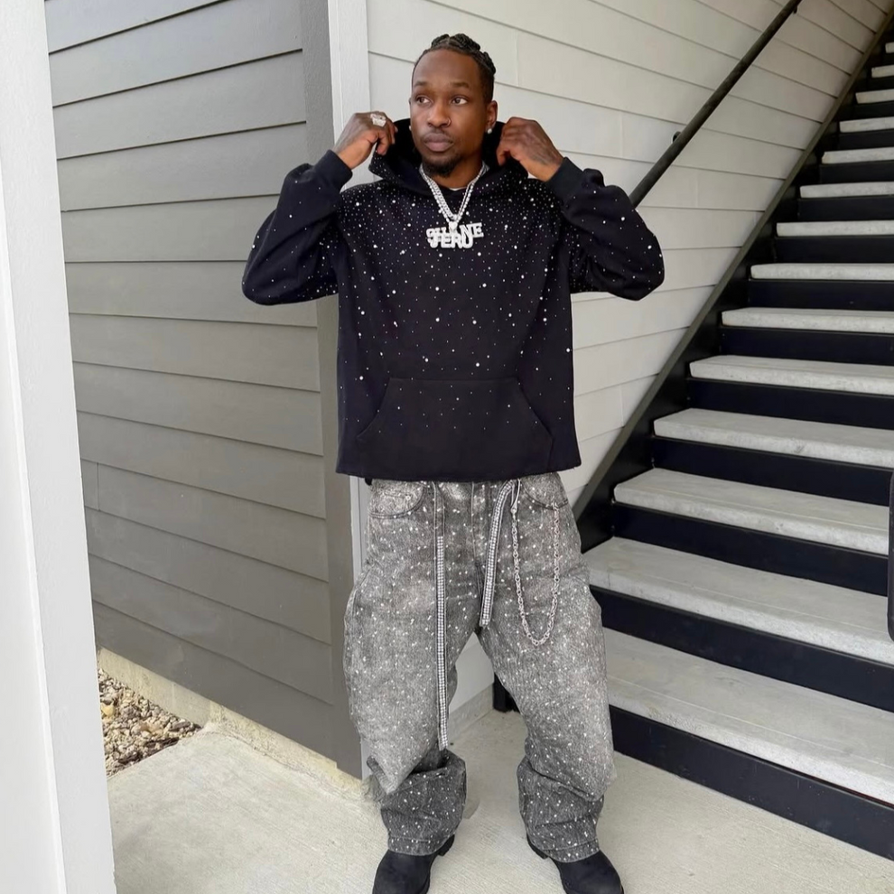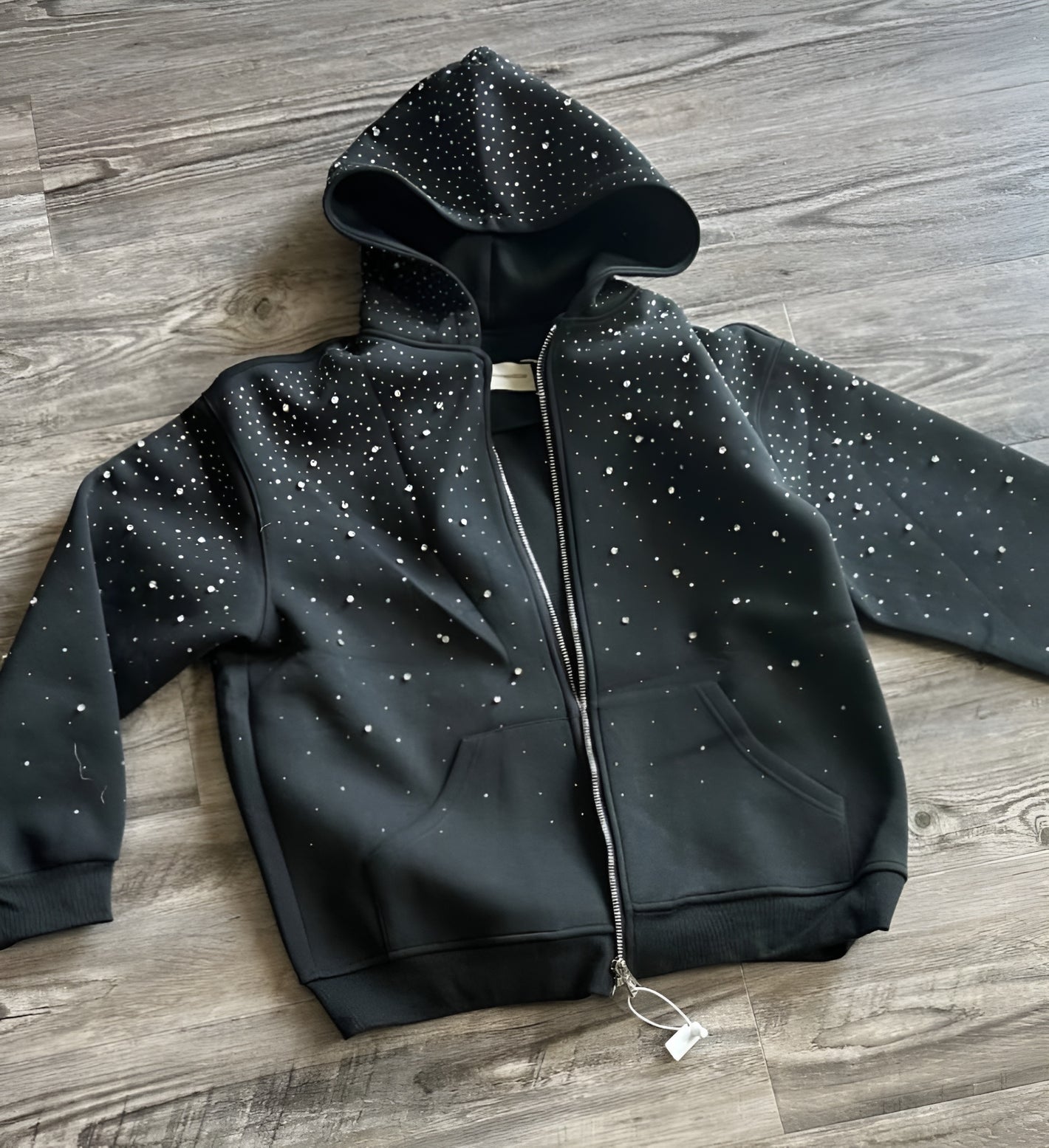 Unha sudadera con capucha que se sente tan ben como parece. Feita de algodón pesado premium, é suave, estruturada e feita para durar. Cada pedriña reflicte a luz perfectamente, dándoche esa vibra de luxo sen esforzo sen ter que tentar demasiado. Calidade que podes sentir, estilo que non podes perder.